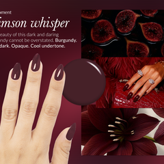 Burgundy. Very dark. Opaque. Cool undertone.